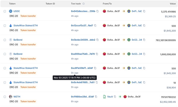 2025年11月3号,下午15时48分,一个神秘的地址(0xAa760D53541d8390074c61DEFeaba314675b8e3f),突然在以太坊链及多个二层链、兼容链上接收来自老牌DeFi协议Balancer金库中的大量代币。