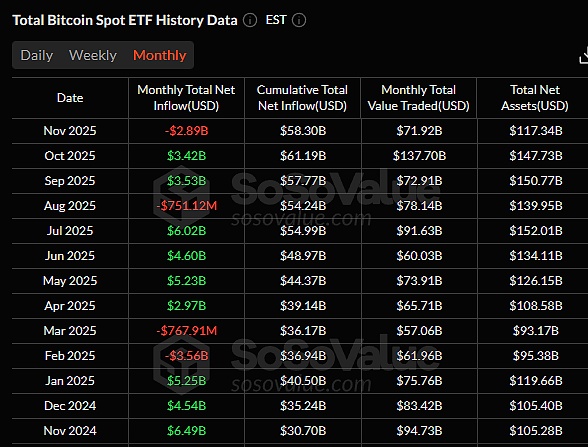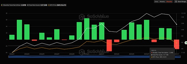 现在11月,ETF现货流出还不到2月份的量,但是币价已经从月初的11万下跌了20%到8万7。